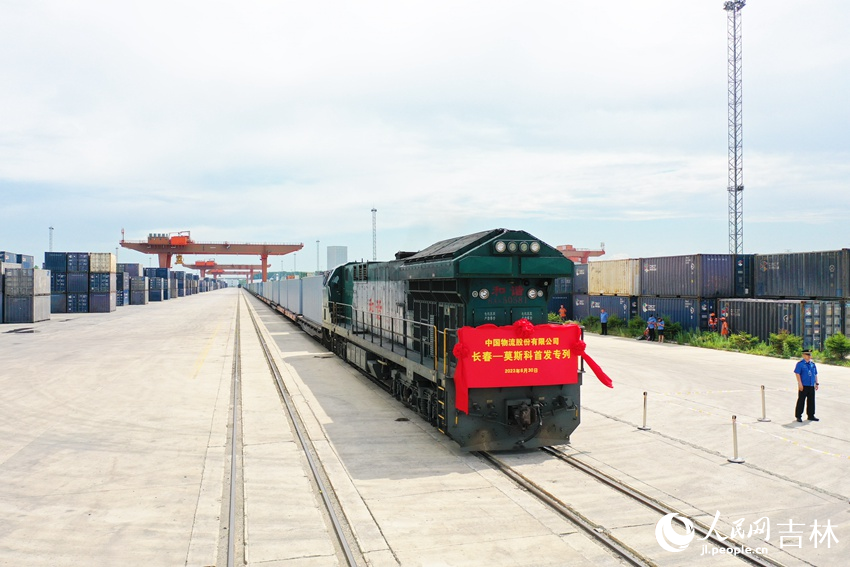 中国物流中欧班列(长春—莫斯科)在长春新区国际港首发。人民网记者 王海跃摄