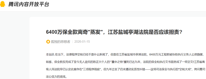 6400万保全款离奇"蒸发",江苏盐城亭湖法院是否应该担责?